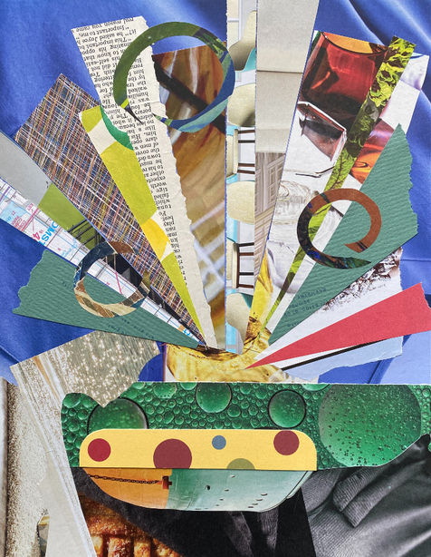 I enjoy arranging things. Always have. Furniture in a dollhouse, junk in a drawer, words on a page. Surprisingly, my approach to collage is not organized or predictable. Starting with a word or image for inspiration, I rely on intuition as I select, cut, arrange, and paste found materials to create something new. Order from chaos. Working without a plan pushes me beyond my comfort zone. Collage gives me the courage to embrace the winds of unpredictability.