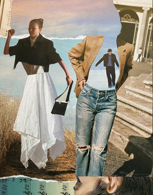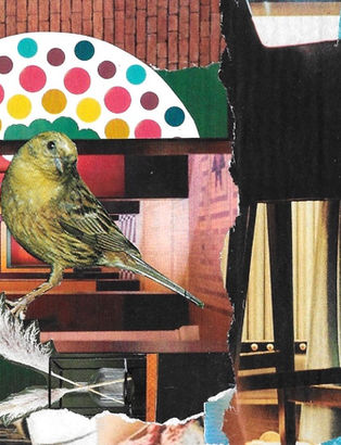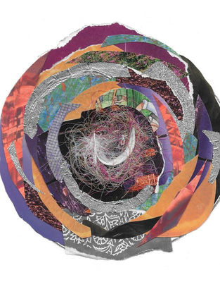 I enjoy arranging things. Always have. Furniture in a dollhouse, junk in a drawer, words on a page. Surprisingly, my approach to collage is not organized or predictable. Starting with a word or image for inspiration, I rely on intuition as I select, cut, arrange, and paste found materials to create something new. Order from chaos. Working without a plan pushes me beyond my comfort zone. Collage gives me the courage to embrace the winds of unpredictability.